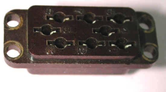 Cinch 6 way chassis Socket. Flat blade "Jones" style with crackle