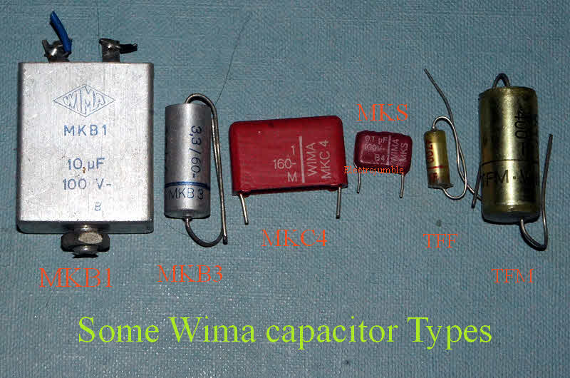 identification here is a picture of some of the more common Wima Capacitors.